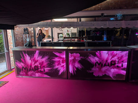 Our 'Glow' bars are a stunning and vibrant option for your event, offering a sleek and professional bar frontage.